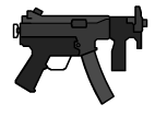 The H&K MP5K is a compact variant of the MP5. It debuted during Madness Combat 3: Avenger, in which Hank used one against several grunts. It reappeared in Madness Combat 4: Apotheosis with only a slightly modified design. In Vomit, it underwent a complete redesign with a more detailed image. in Madness combat 8,The Auditor spawned two of these to use against Jesus. Near the end of the episode, the Auditor's computer was opened to a website with the following description of the MP5K: "This gun also shoots bullets, surprize, surprize. Booooooooring. I look at this gun and want to barf."